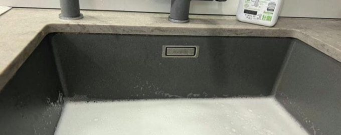 För att förverkliga det behöver du bara två tillgängliga ingredienser – vanligt diskmedel och varmt vatten. Vätskans temperatur spelar en viktig roll eftersom den hjälper till att bryta ner fetter och lösa upp matpartiklar.